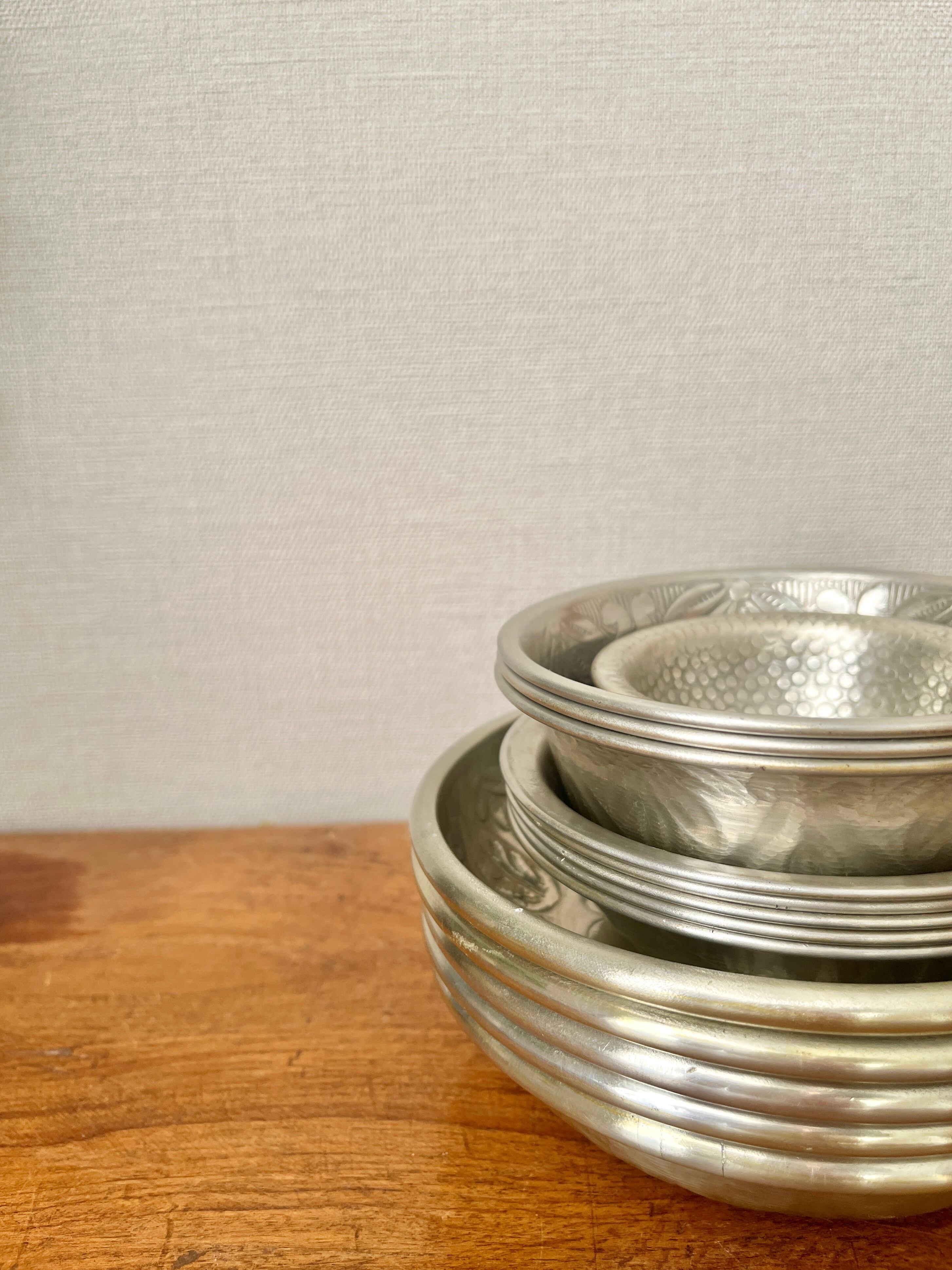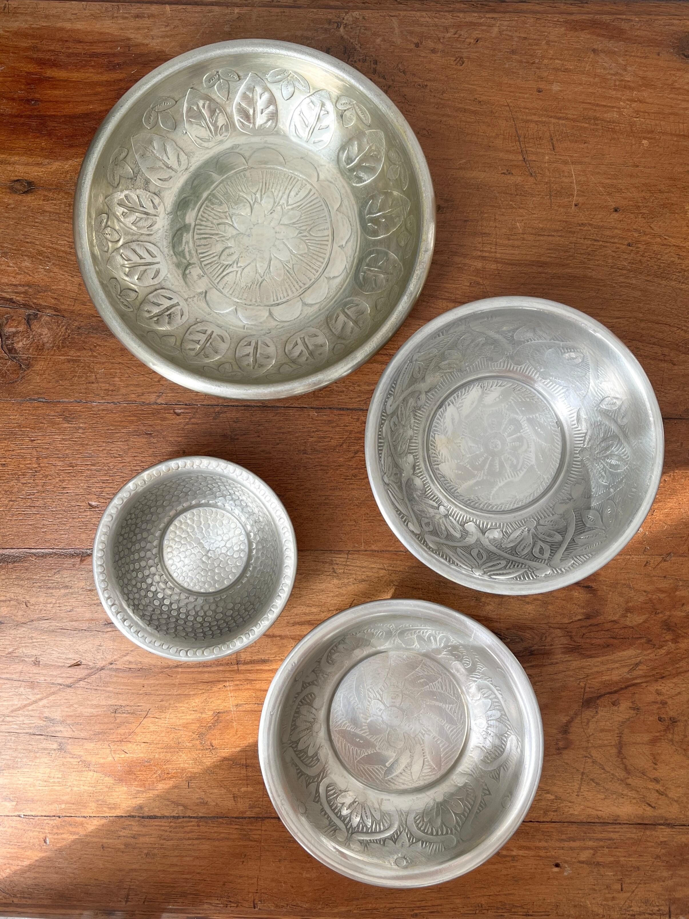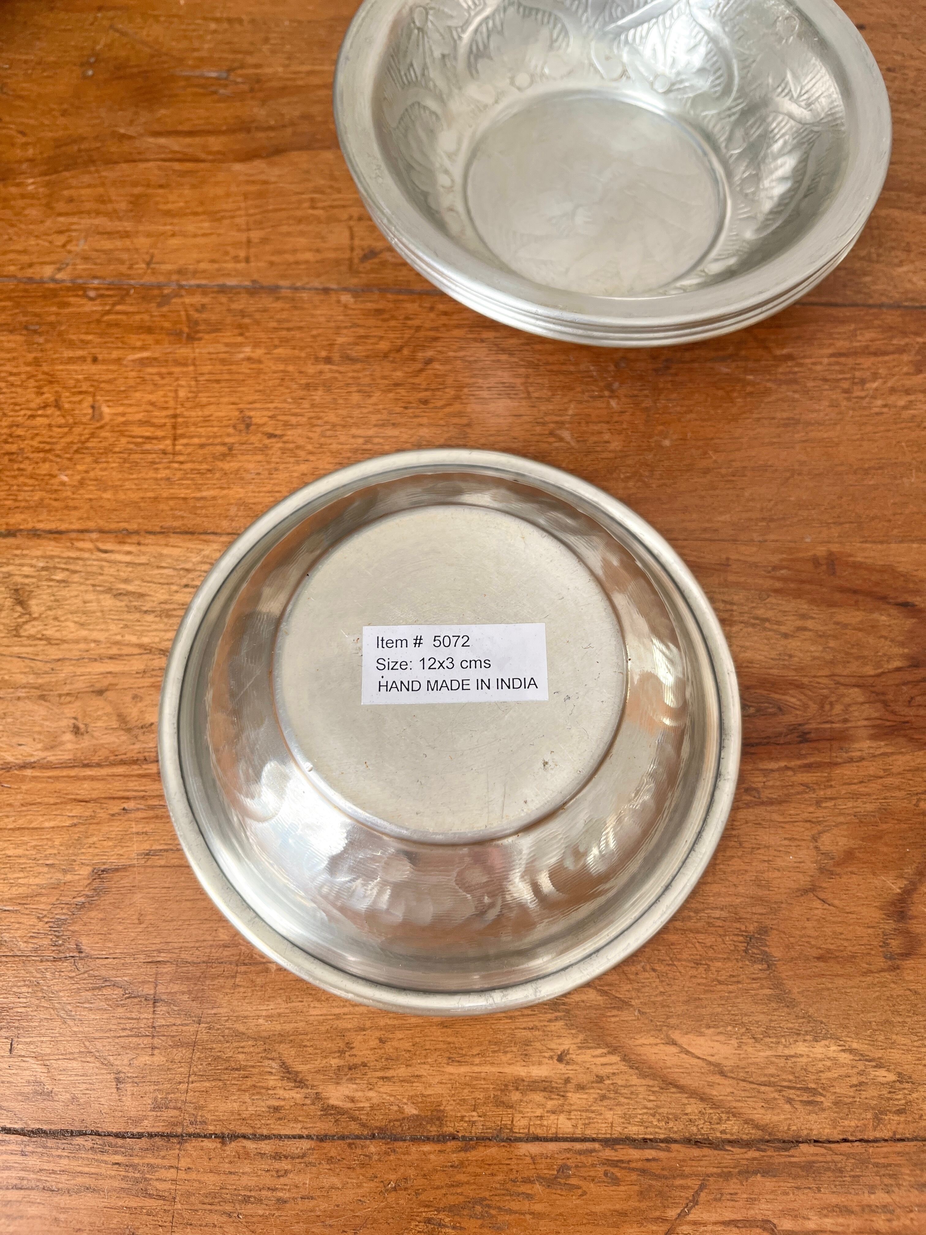 インドのイスラム街モラダバードでムスリムの手仕事職人によって作られているアルミボウル。マットな質感に可愛らしい花柄、しっかりとした作りがバランスよく大人かわいい仕上がりです。
