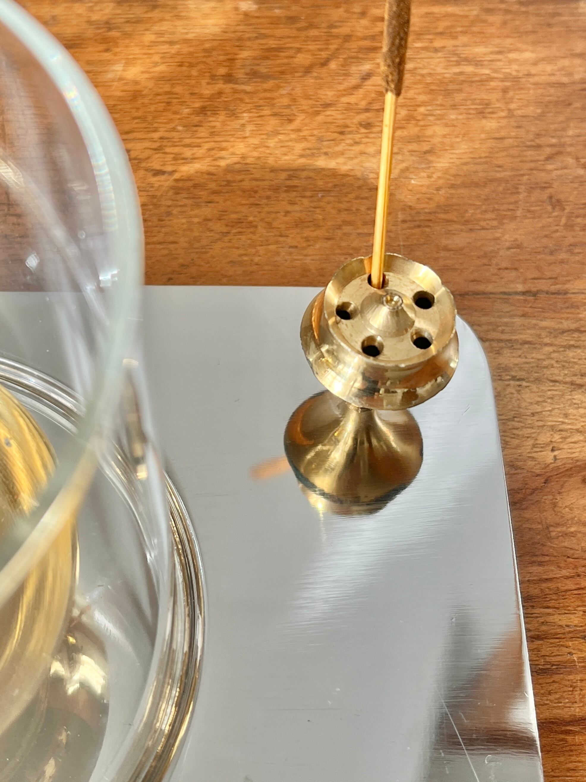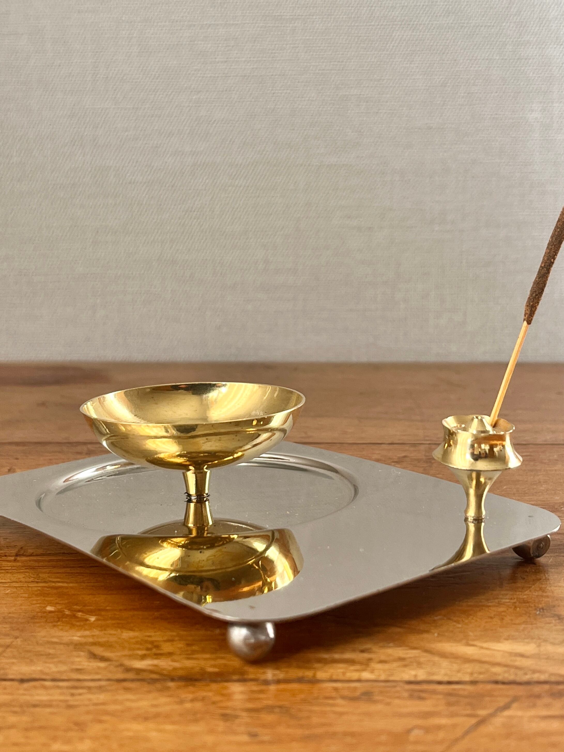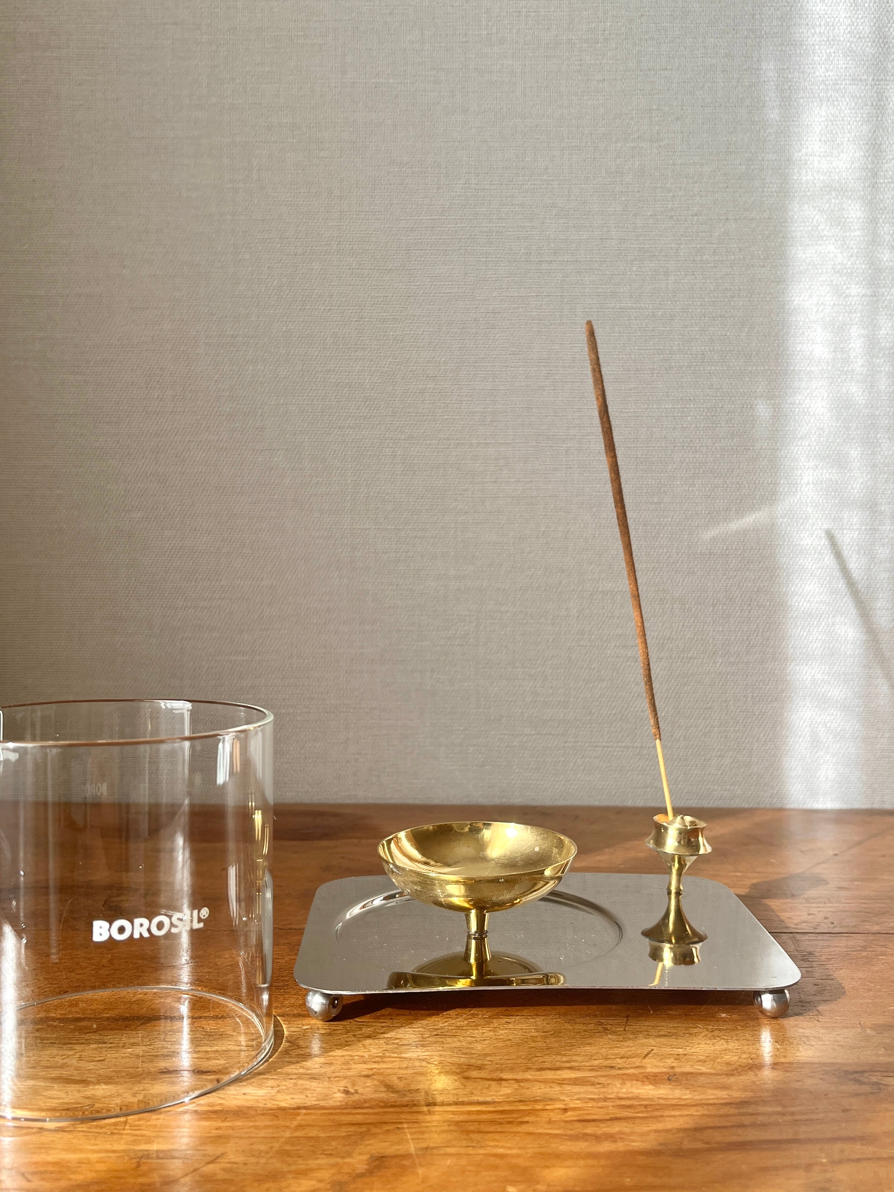 真鍮のお皿部分はオイルを垂らしコットン芯に火を灯すオイルランプ用ですが、キャンドルを置いたり、セージやコーン型のお香を焚いたりポプリを置いたりと様々な使い方ができます。