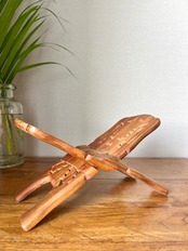 インドで作られている木製の書見台です。もともとはイスラーム教徒がコーランや聖典を置いて読み上げるために使用されるものです。